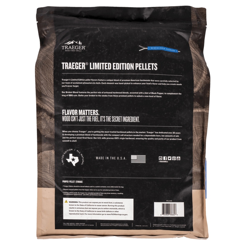 Traeger Brisket Blend Pellet, 18 lb Net Content, Bag Container, Hardwood, Black Pepper, Oak, Pecan Flavor