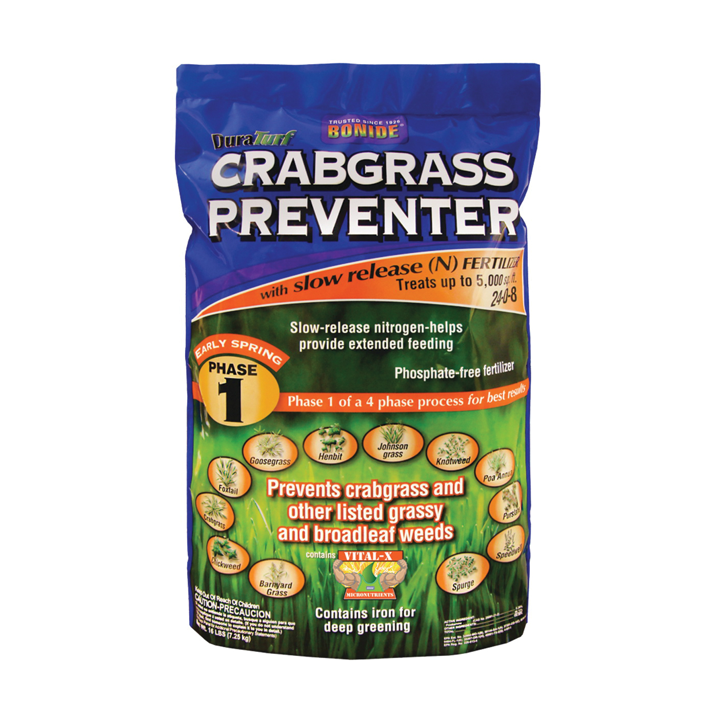 Prevents crabgrass and other grassy weeds for up to 5 months. Contains premium turf-grade, slow release fertilizer and non-staining iron for deep greening plus our exclusive Vital-X micro-nutrient package for premium performance.