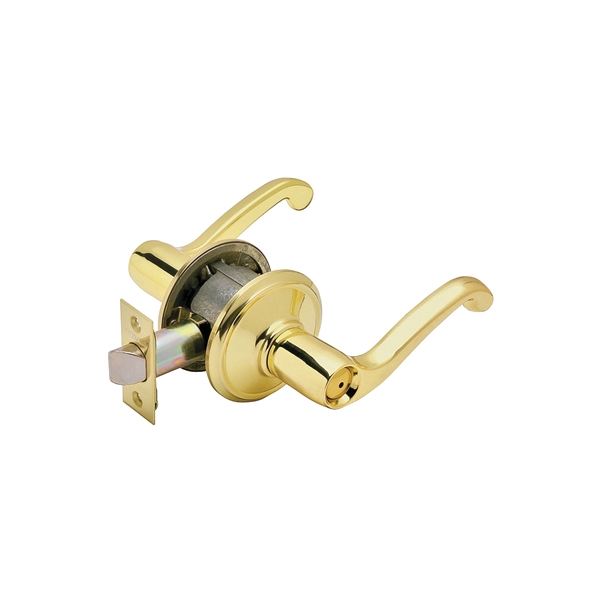 For residential single and multi-family bed/bathroom doors. Pushbutton locking, opens from outside with small tool, turning inside lever releases pushbutton. Zinc based and plated, solid lever designing. 3-Piece assembly. Triple Option Universal fits all doors, 2-3/4 in or 2-3/8 in backset, square corner, round corner or drive in preps. All locksets have the same finish for both interior and exterior parts except the Bright Brass finish which has bright brass finish on all interior parts and Ultima Lifetime Anti-Tarnish finish on all exterior parts.