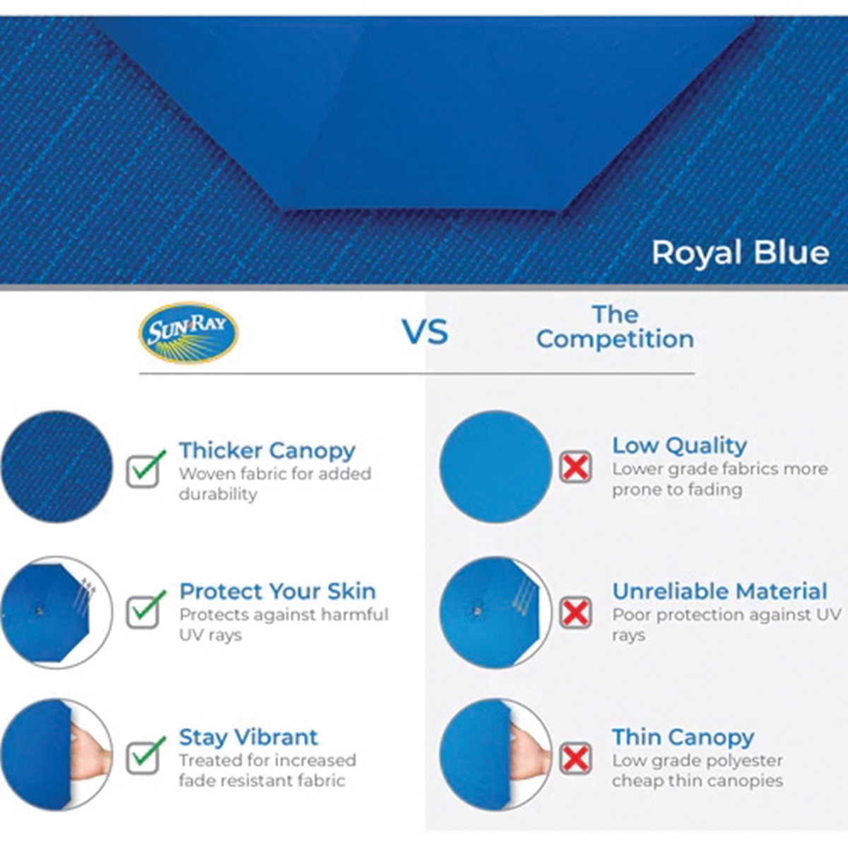 SunRay 801022RB Solar Lighted Umbrella, 93.7 in H, 9 ft W Canopy, Round Canopy, Aluminum Frame, Polyester Fabric