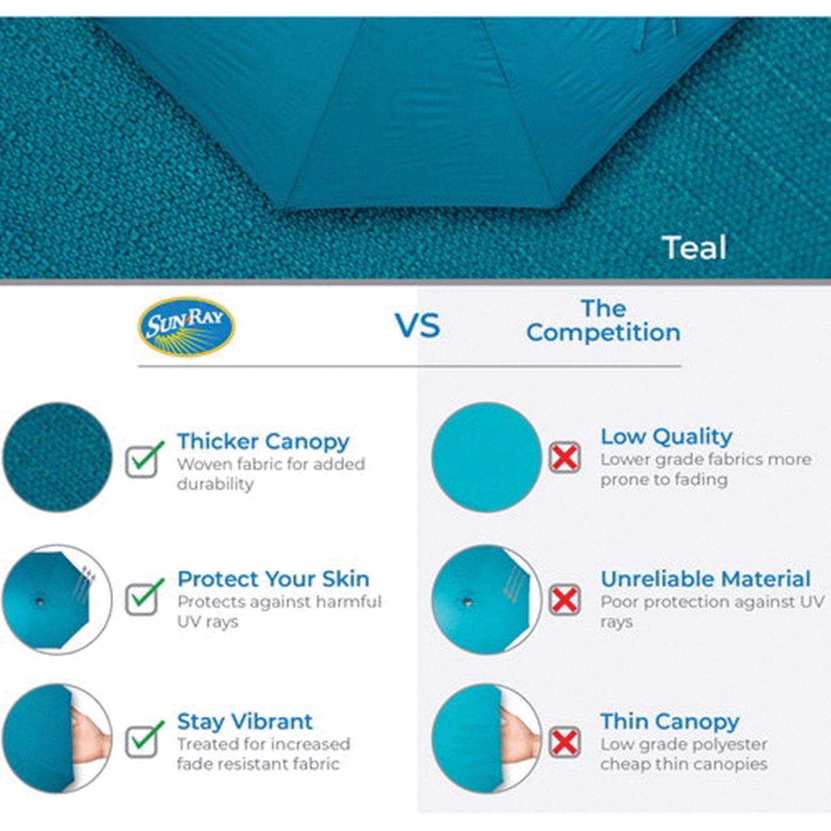 • Polyester canopy with upgraded colorfastness