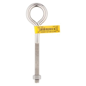 National Hardware Eye Bolt, Thread Type: Coarse, Thread Size: 3/8-16, Thread Length: 3 in, TPI/Pitch: 16, Shank Diameter: 0.33 in, Shank Length: 4.35 in, Eye Diameter: 1 in ID, 6 in OAL, Working Load Limit: 160 lb, Stainless Steel, Stainless Steel, Includes: Hex Nuts