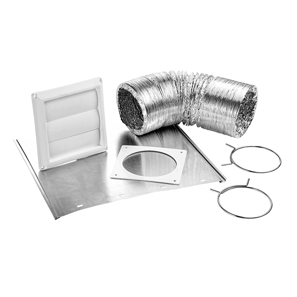Includes | : | (1) 4 in White Plastic Louvered Vent with 11 in Tail Pipe, (1) 4 in White Plastic Trim Plate, (1) 4 in x 8 ft UL 2158A Laminated Transition Duct, (2) 4 in Galvanized Tension Clamps |