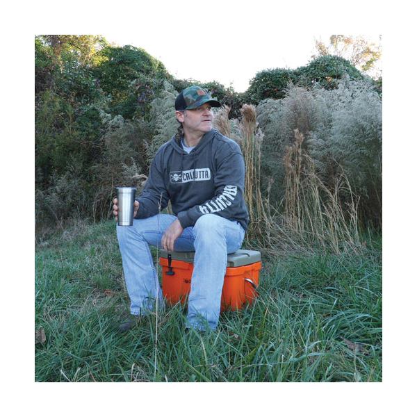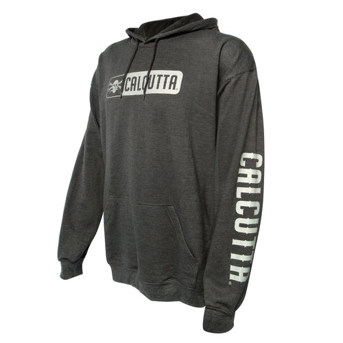 Super soft, lightweight tri-blend hoodie. Heather gray with classic Calcutta logo on front chest and name on arm.