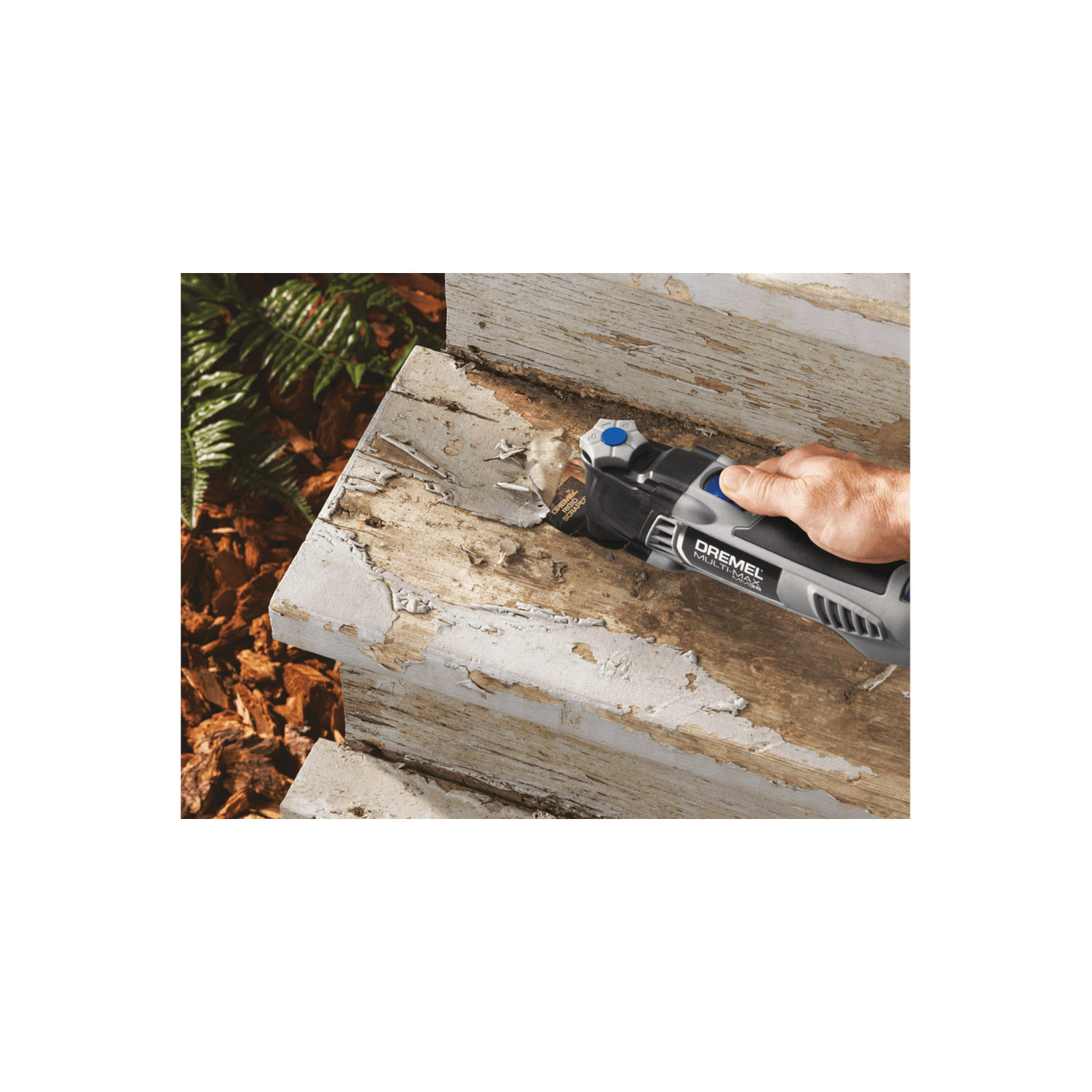 The flexible scraper blade is great for removing soft materials such as caulk, coats of peeling paint and other soft adhesives. The blade is newly designed, utilizing Dremel®'s universal quick-fit interface for compatibility with most oscillating tool on the market.