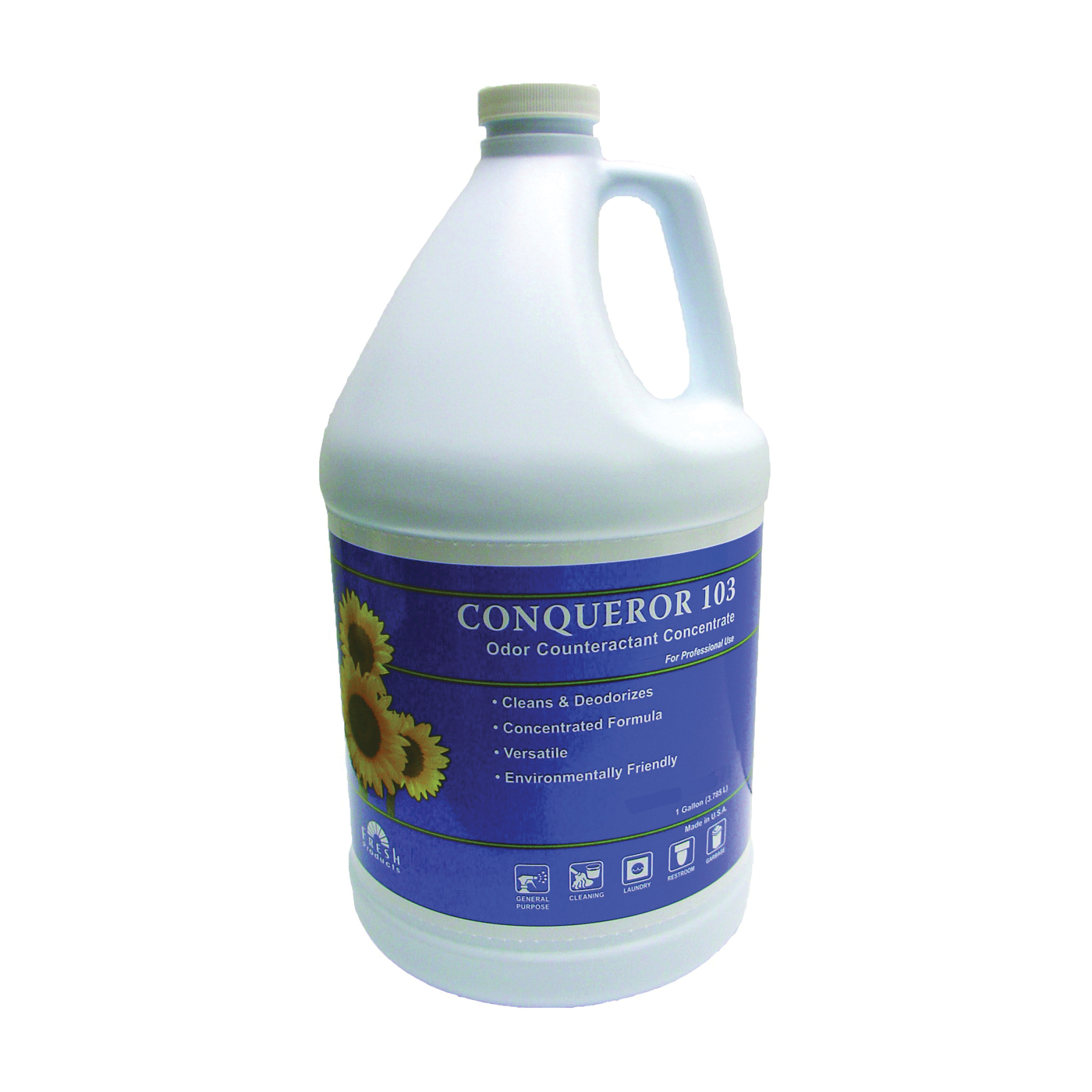 Conqueror 103 is a highly concentrated water soluble deodorant liquid cleaner. The clear formulation can be used safely on a variety of surfaces to clean and deodorize. Dilute and use directly as a cleaner deodorizer or add it to your favorite cleaner to match and layer fragrances throughout your facility.