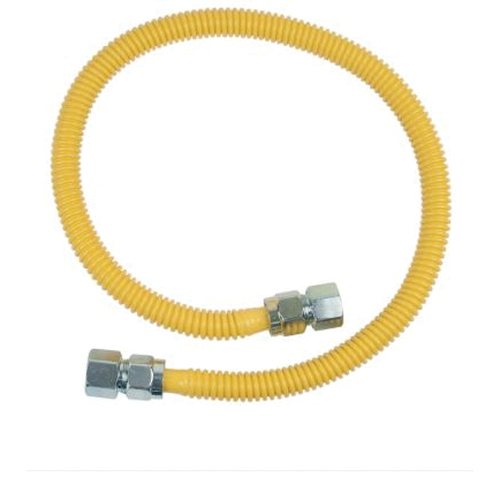 BrassCraft's ProCoat® stainless steel gas connector is engineered with added safety in mind. The proprietary polymer coating is designed to withstand prolonged exposure to harsh household chemicals, UV rays and salt. ProCoat® is applied to the corrugated stainless steel connector using advanced powder coat technology. Unlike conventional dipped or sprayed coatings, the ProCoat® coating is baked directly onto the connector surface at high-temperatures to provide a uniform coating over the entire length of the connector. The coating is applied only after the connector has been 100% leak tested, prior to nut and fitting assembly. This process results in the most complete corrosion resistance available.
