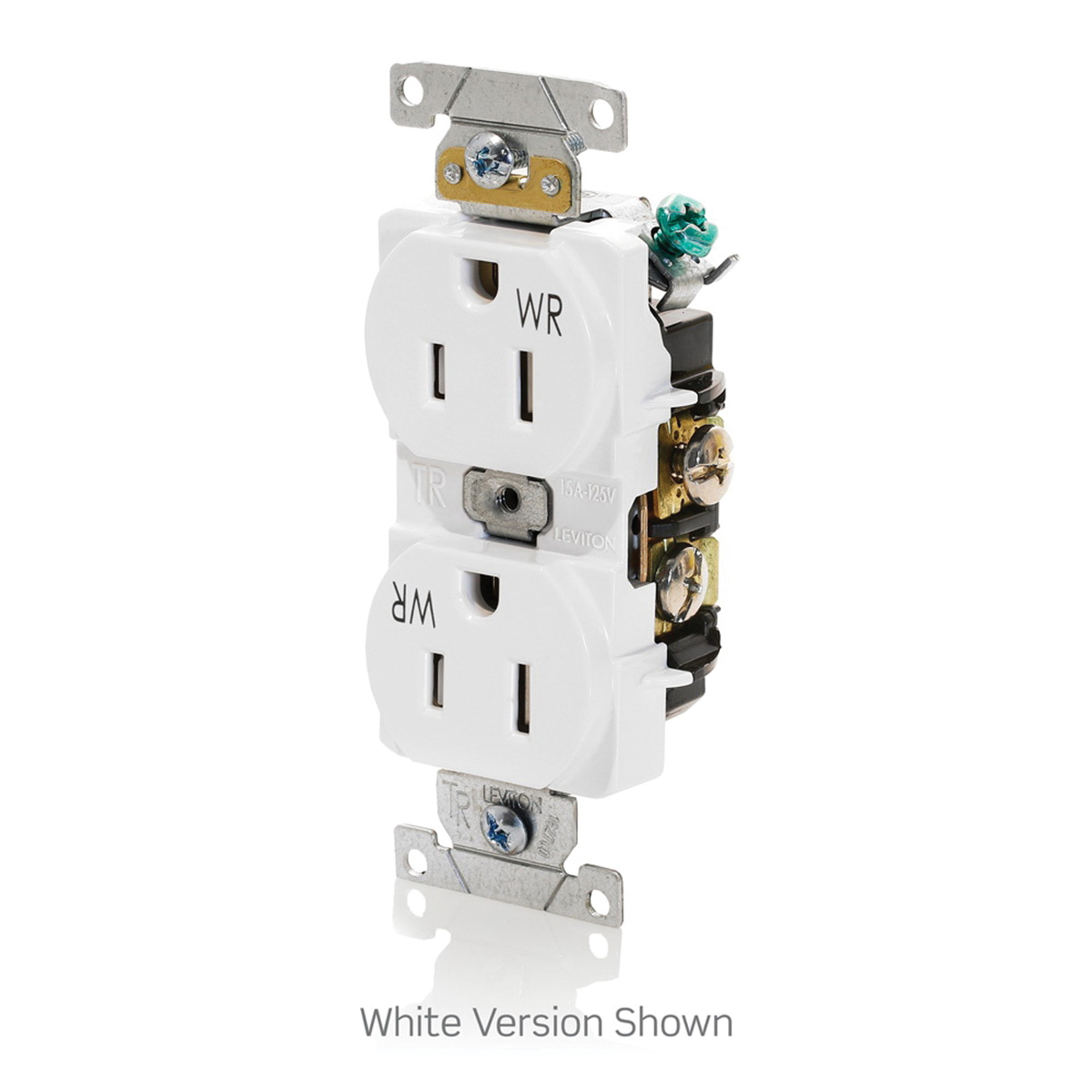 Leviton TWR15-W Duplex Receptacle, 2 -Pole, 15 A, 125 V, Back, Side Wiring, NEMA: 5-15R, Black/Ivory/White