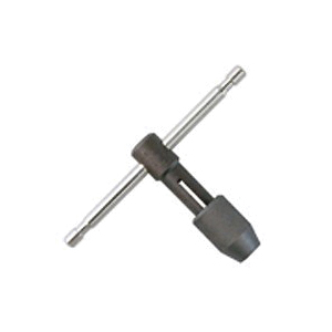 Designed for use with taps and on many other tools to be turned by hand. Easy adjustment and tightening quick turn. Additional holding jaws are recessed inside hole for gripping onto smaller sized taps. T-handle extends full length in either direction for more leverage.