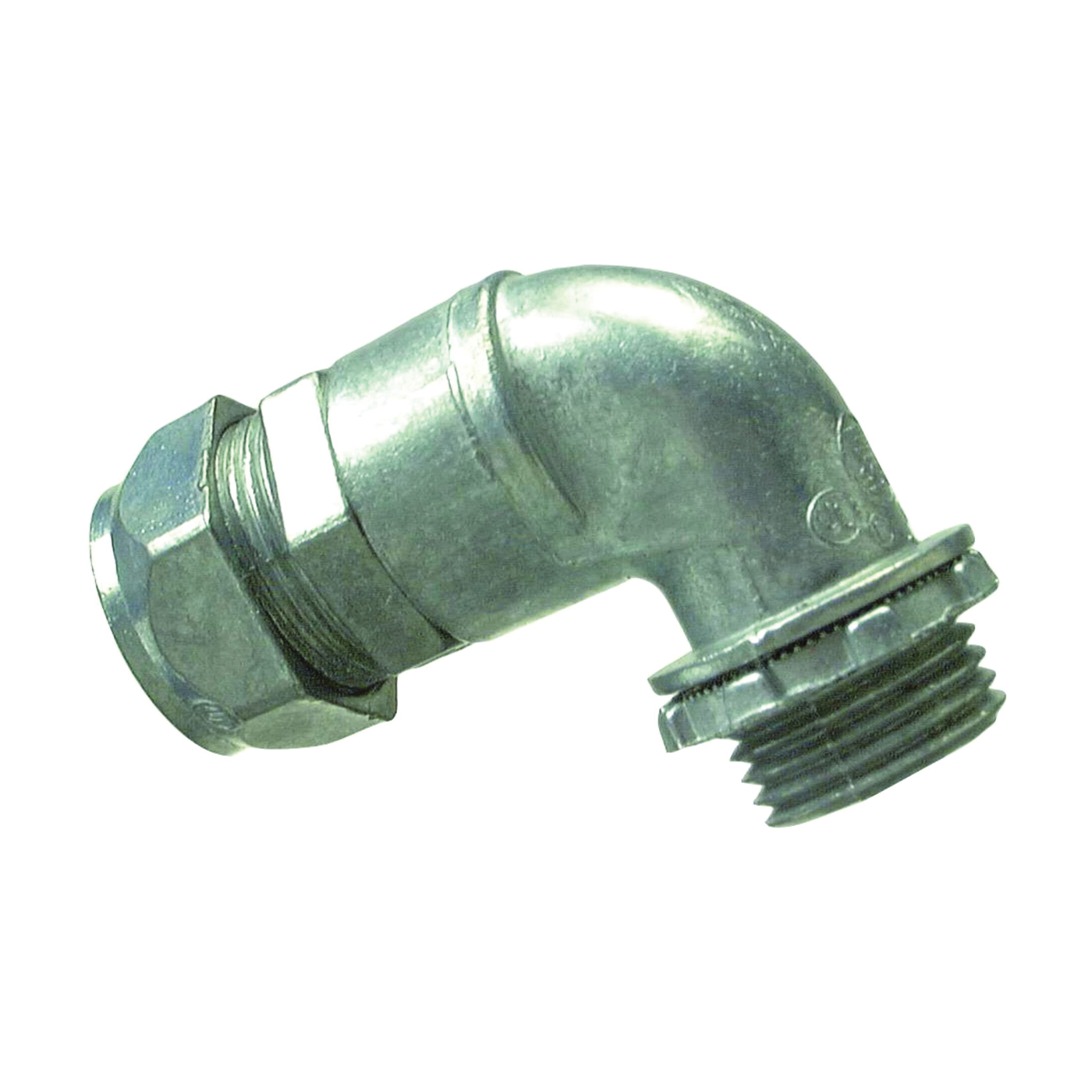 Zinc die cast. Concrete-tight. Indoor or outdoor applications. Use to connect EMT conduit to a metal outlet box or enclosure where a 90 deg bend is required and a pipe bending tool is not used. UL, CSA listed.