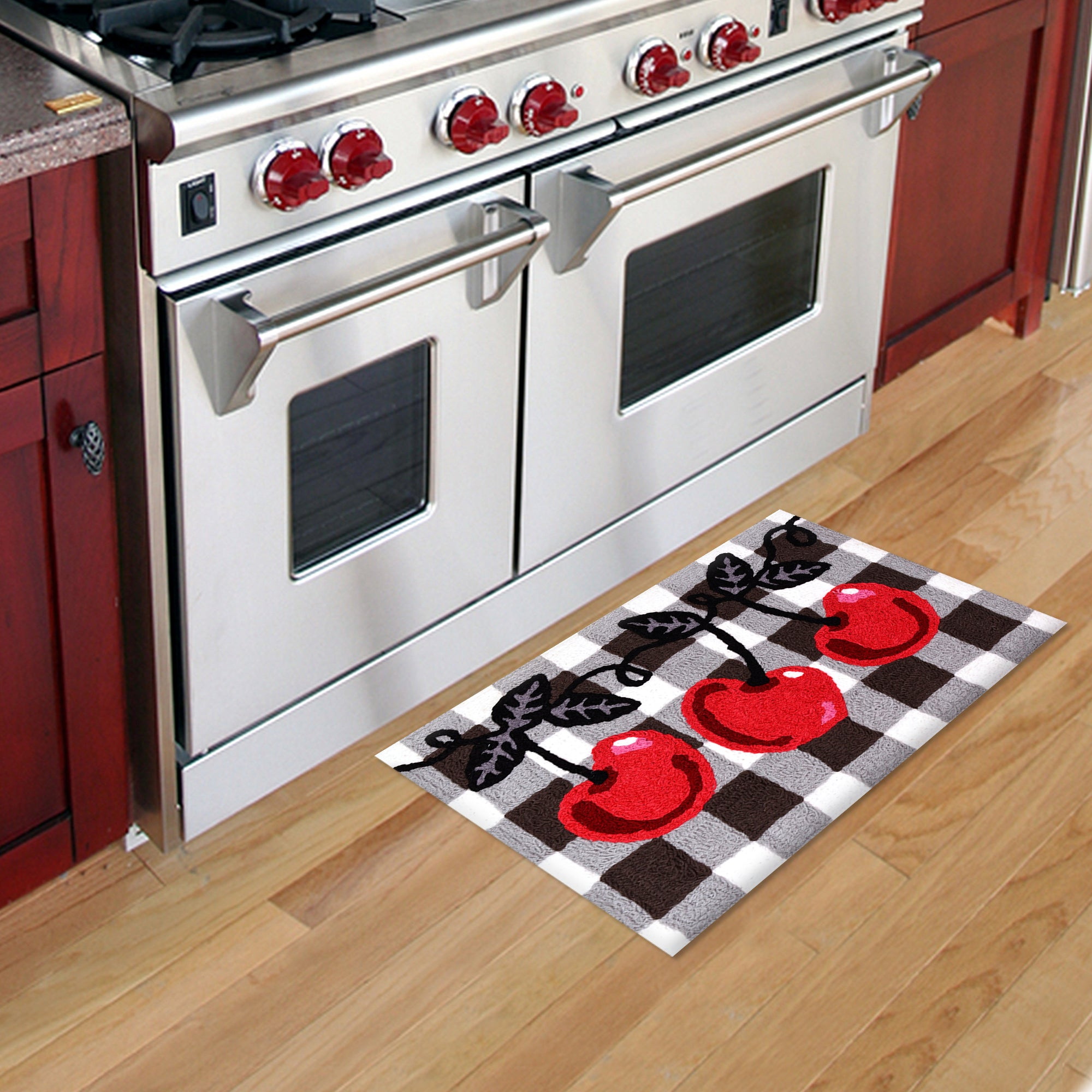 Jellybean JB-EK006 Accent Rug, 30 in L, 20 in W, Rectangular, Cherries On Checks Pattern, Polyester Rug