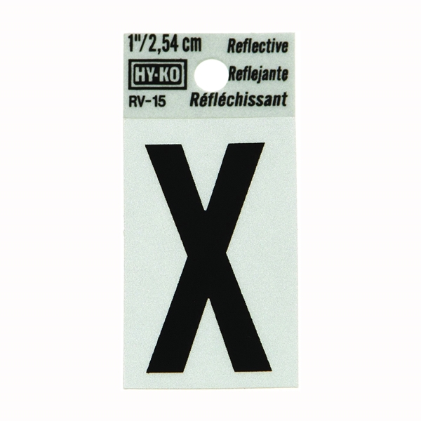 HY-KO RV-15/X Reflective Letter, Character: X, 1 in H Character, Black Character, Silver Background, Vinyl