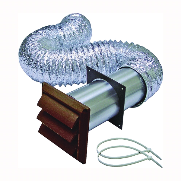 Includes | : | (1) 4 in Brown Plastic Louvered Vent with 11 in Tail Pipe, (1) 4 in Brown Plastic Trim Plate, (1) 4 in x 5 ft UL 2158A Laminated Transition Duct, (2) 4 in Galvanized Tension Clamps |