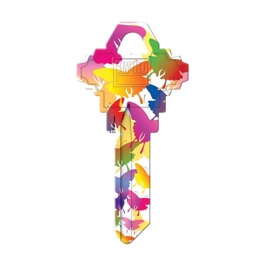 HY-KO Key Blank, Design/Theme: Butterfly, Brass, Dimensions: 1.07 in W x 0.09 in D x 2.1 in H, Suitable for: Schlage SC1 Keyways