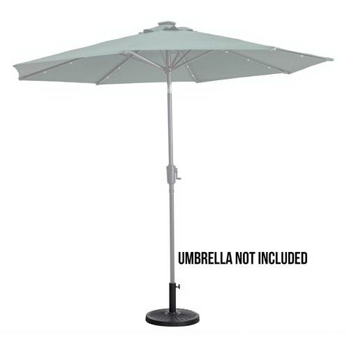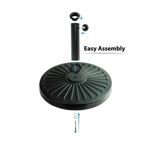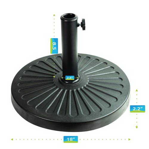 This patio umbrella base stand durable 26 lb composite umbrella stand is the ideal accessory for any standard patio umbrella. Fits poles of 1-1/4 in, 1-2/5 in and 1-1/2 in Dia. For better results, place the umbrella stand beneath a patio table with your umbrella pole inserted through the opening in the table.