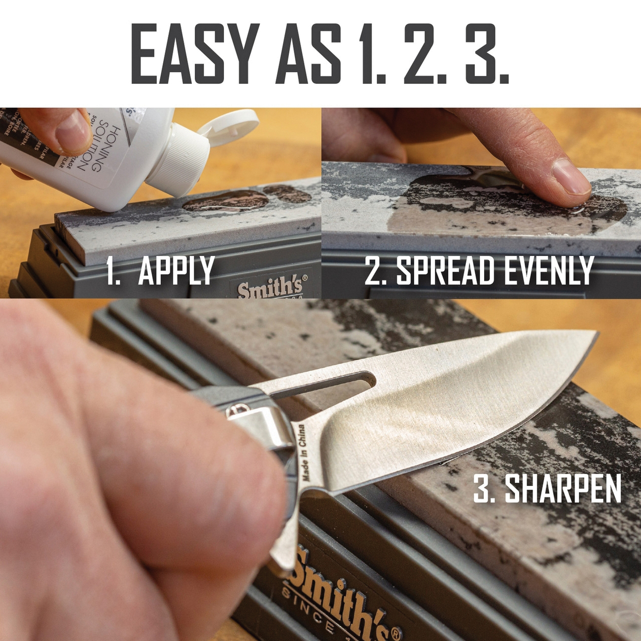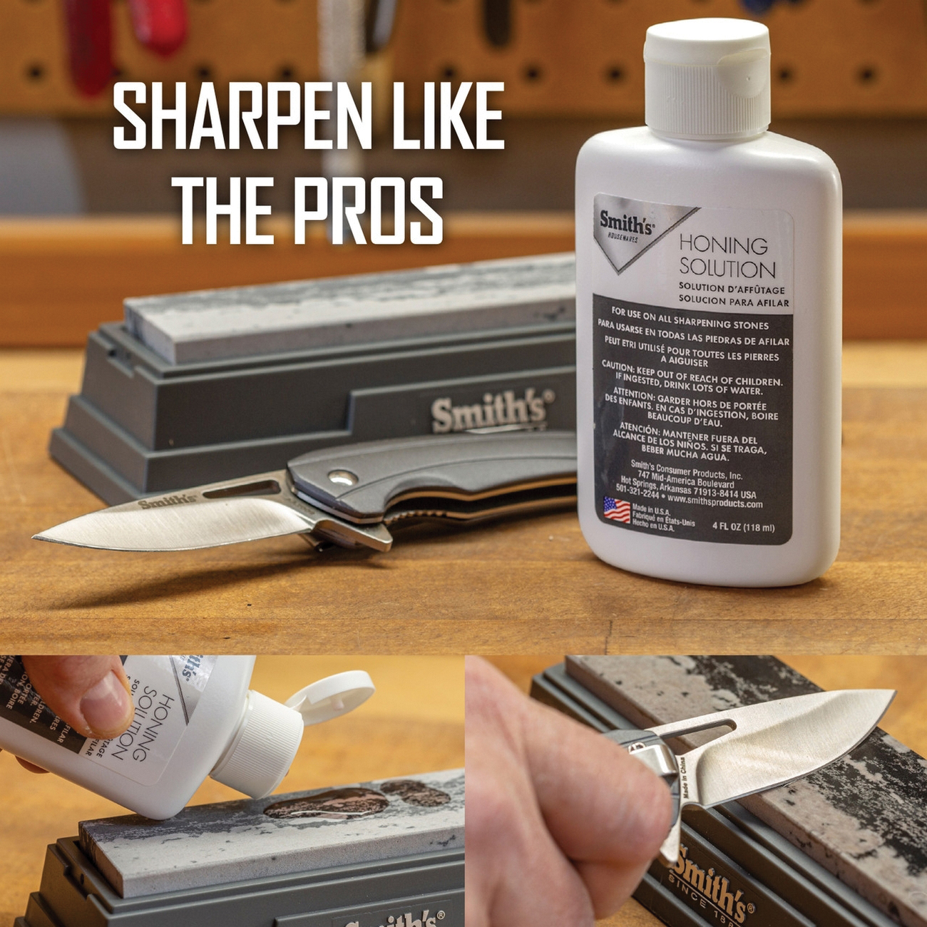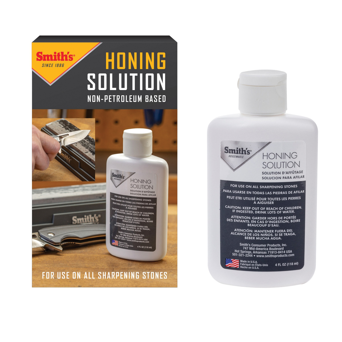 Smith's honing solution is expertly crafted with a unique, non-petroleum formula designed to enhance your sharpening experience. Infused with specialized cleaning agents and powerful rust and corrosion inhibitors, this solution ensures your stones remain in pristine condition. Suitable for all types of stones, it excels with Arkansas or diamond stones, providing the necessary lubrication for optimal sharpening results. While diamond stones can be used dry, the use of our honing solution is highly recommended to amplify performance. Ensure your Arkansas stones are never used without this lubricant to prevent pore clogging and maintain their sharpening efficacy. Elevate your tool and knife maintenance with Smith's Honing Solution for smooth, efficient sharpening every time.