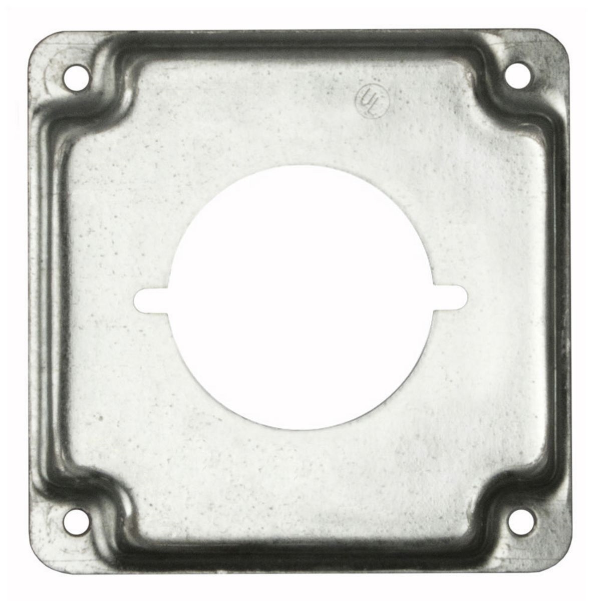 Used to mount switches or receptacles on boxes in surface mount applications. Raised 1/2 in. For one 30-50 A, single receptacle, 2-9/64 in Dia. 6-1/2 cu-in capacity. 4 in square. UL listed.