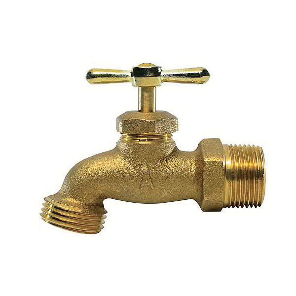 AMERICAN VALVE Sink Hose Bibb, 3/4 in Connection, MNPT x GHT Connection, 125 psi, Actuator Type: Multi-Turn, Temperature Rating: 180 deg F, Body Material: Brass, Softgoods Material: EPDM, Dimensions: 3-3/5 in W
