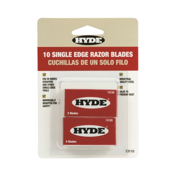 Single edge blades 0.009 in THK. Industrial quality steel. Oiled to prevent rusting and individually wrapped for safety. 2 packs of 5 blades.