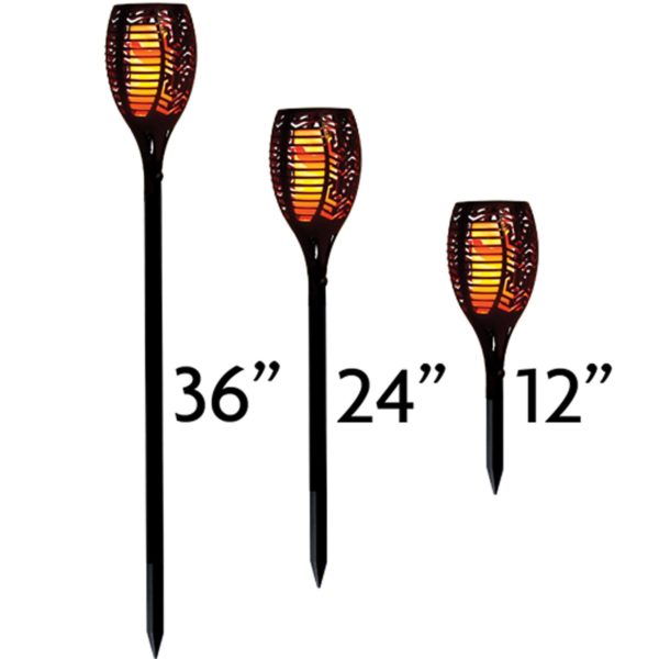 This torch is a great addition to anybody's home. With its solar technology makes for an easy to maintain the item, it also has an on/off button for when you don't want it to come on. It can extend up to 36 in perfect for anywhere. The stylish black design makes it easy to blend into any themed backyard.