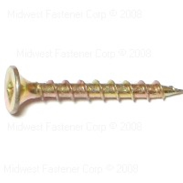 MIDWEST FASTENER Screw, Thread Size: #6, 1-1/4 in L, Thread Type: Coarse, Head Type: Bugle, Drive Type: Square, Steel, Yellow Zinc, Package Quantity: 1340 PK, Drive Size: #2, Applicable Materials: Drywall, Wood