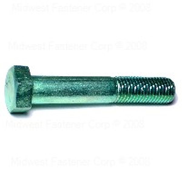 Midwest Fastener Hex Cap Screw, Measuring Type: SAE, Steel, 5 Grade, Zinc, Green, Thread Type: Coarse, Thread Size: 7/8-9, Hex Size: 1-5/16 in, 5 in OAL