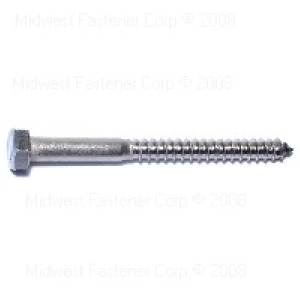 Midwest Fastener Lag Screw, Measuring Type: SAE, Stainless Steel, Thread Size: 5/16 in, 3-1/2 in OAL