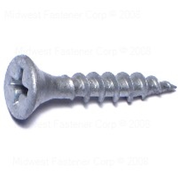 MIDWEST FASTENER Deck Screw, Thread Size: #7, 1 in L, Thread Type: Coarse, Head Type: Bugle, Drive Type: Phillips, Steel, Package Quantity: 1300 PK, Drive Size: #2, Silver, Applicable Materials: Wood