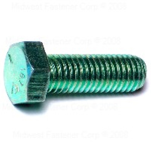 MIDWEST FASTENER Hex Cap Screw, Measuring Type: SAE, Steel, 5 Grade, Zinc, Green, Thread Type: Coarse, Thread Size: 1/2-13, 1 in OAL