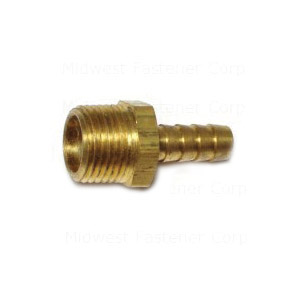 MIDWEST FASTENER Hose Connector, Nominal Size 1: 3/8 in, Nominal Size 2: 1/2 in, Connection Type 1: Barb, Connection Type 2: MPT, Brass