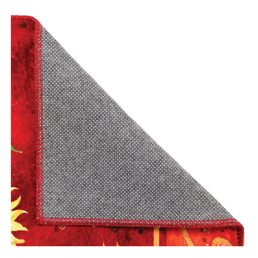 Olivia's Home™ Collection by Home Comfort. Printed with a soft, suede feel texture, this Olivia's Home™ accent rug was designed by American artist Victoria Hutto. Nothing brings a smile like the "WOOF" from a furry friend. This Olivia's Home™ combines the excellent of both worlds: a suede fell mat with a low profile that is ideal for homes with kids and pets. The printed accent rug is machine washable for easy maintenance and continued enjoyment of the warm tones of orange and brown. You can also layer this rug on a carpet for an extra layer of color. This machine washable accent rug is velvety soft to the touch and super thin to fit under the tightest of door frames. It also has a stitched edge for a finished look. You're going to love the ease of care with this great rug. Machine wash, vacuum, sweep, spot clean and you're good to go. We recommend using a rug pad or try carpet tape to hold your rug in place.