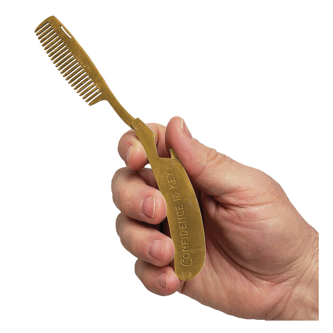 Shaped like an old fashioned straight razor and plated in antique brass, it's super classy! Ideal for your the dad, husband, brother or man in your life.