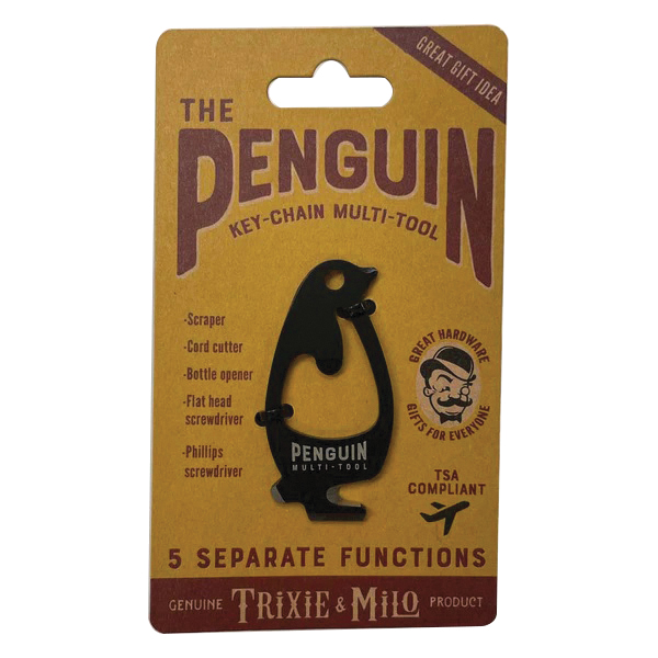 The penguin bottle opener and multi-tool. It has what you need for those common day-to-day jobs and is small enough to have with you wherever you go. Keep it on your keychain, in your wallet or in your glove compartment.