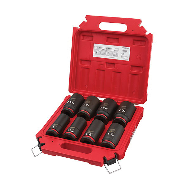 Includes | : | 1 in, 1-1/16 in, 1-1/8 in, 1-1/4 in, 1-5/16 in, 1-3/8 in, 1-7/16 in, 1-1/2 in Deep SAE Sockets and Storage Case |