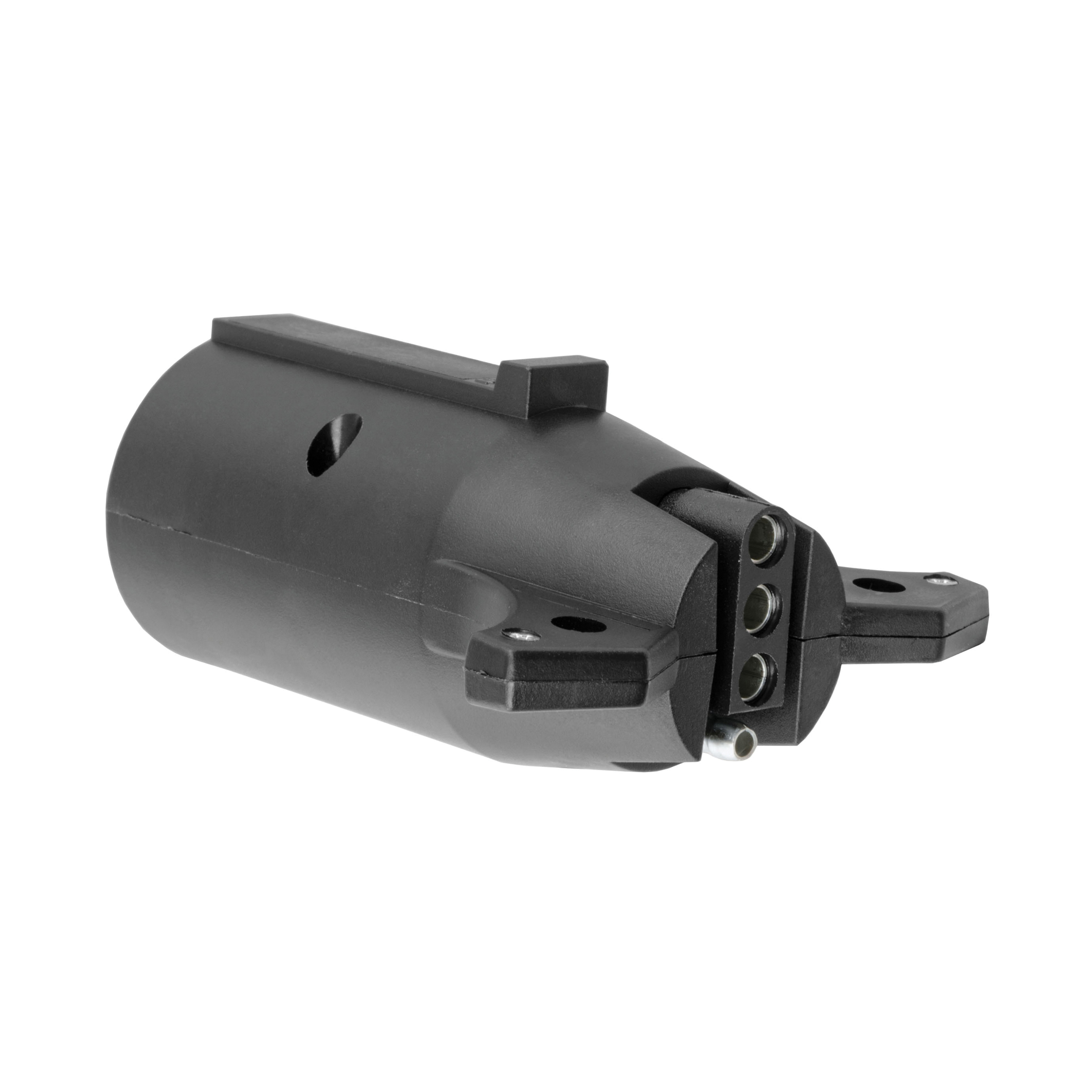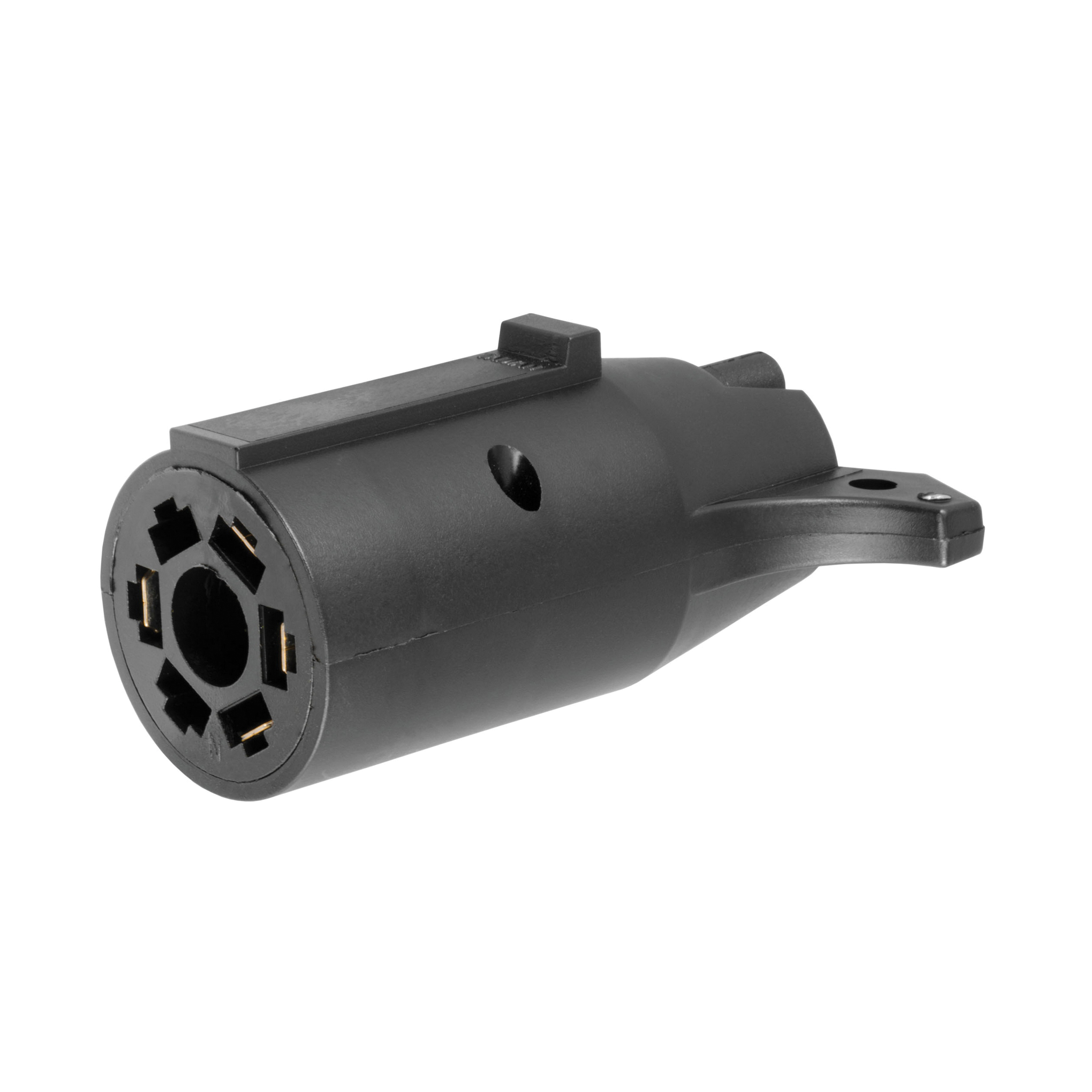 There are several different types of connectors used to supply power from a tow vehicle's electrical system to a trailer's wiring system. Some trailers only need the bare essentials running lights, brake lights and turn signals while others require a connection for reverse lights, electric brakes and auxiliary power. With connectors ranging from simple to complex, it may be the case that the connection between your vehicle and your trailer is not a perfect match. For example, your truck may be equipped with a six-way round socket, but your trailer may have a four-way flat plug. For this very common problem, Curt offers a quick and simple solution in the form of an electrical adapter. An adapter is an electrical device that allows a connection to be made between a mismatched trailer plug and vehicle socket. It easily plugs in your vehicle's electrical socket and usually requires no additional wiring. Curt offers an array of adapters to accommodate most types of plugs and sockets, including four-way flat, four-way round, 5-way flat, six-way round, seven-way RV blades and more. This electrical adapter is designed to adapt a seven-way RV blade vehicle socket to fit a four-way flat trailer plug. It features quality plastic construction and requires no splicing. All Curt wiring and electrical products come with a 1 year limited warranty to give you the assurance you need to tow with confidence.