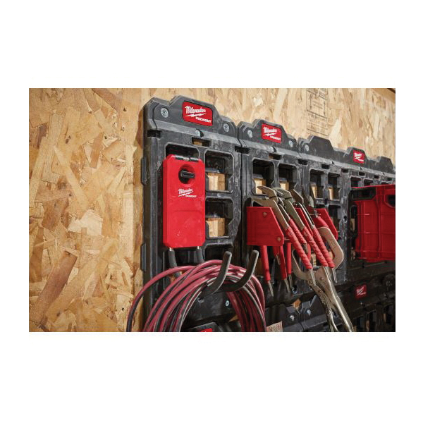 Our PACKOUT™ 6 in curved hook delivers the most secure mounting when paired with PACKOUT™ wall plates, strongly holding the PACKOUT™ solution mounted to the wall. This hook is constructed with metal reinforcement to maintain shape when loaded and is optimized to store cords, heavy long-handled tools and more. To keep your tools securely in place and protected, this hook features protective rubber grips. Additionally, our hook features connectivity with PACKOUT™ solutions allowing you to fully customize your shop, MILWAUKEE® PACKOUT™ is the industry's most versatile and durable modular storage system.