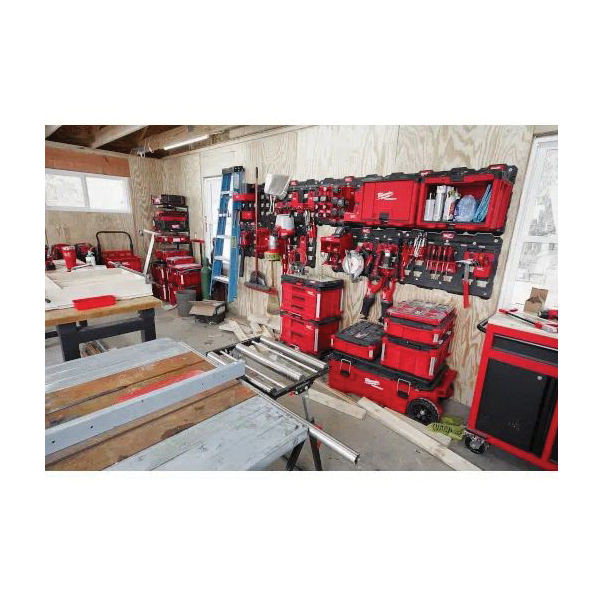 Our PACKOUT™ tool station delivers the most secure mounting when paired with PACKOUT™ wall plates, strongly holding the PACKOUT™ solution mounted to the wall. Featuring quick access tool slots, this tool station allows you to maximize efficiency in the shop. This tool station is optimized to store drills, impact wrenches and more. In addition to the tool slots, the top shelf and bottom compartment can store chargers and accessories. Additionally, our tool station features connectivity with PACKOUT™ solutions allowing you to fully customize your shop, MILWAUKEE® PACKOUT™ is the industry's most versatile and durable modular storage system.