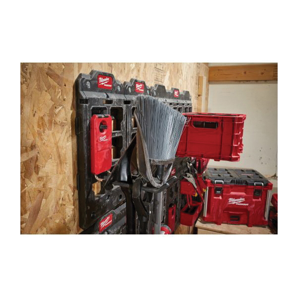 Our PACKOUT™ 9 in straight hook delivers the most secure mounting when paired with PACKOUT™ wall plates, strongly holding the PACKOUT™ solution mounted to the wall. This hook is constructed with metal reinforcement to maintain shape when loaded and is optimized to store outdoor power equipment, multiple long-handled tools and more. To keep your tools securely in place and protected, this hook features protective rubber grips. Additionally, our hook features connectivity with PACKOUT™ solutions allowing you to fully customize your shop, MILWAUKEE® PACKOUT™ is the industry's most versatile and durable modular storage system.