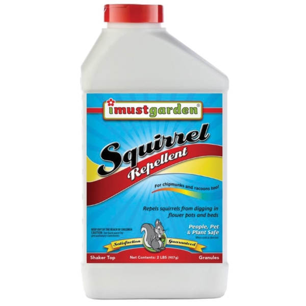 I Must Garden squirrel repellent is an environmentally safe, humane and effective way to deter squirrels from damaging plants, furniture, decking/housing, hoses, flower beds/pots and more It contains botanical oils that smell and taste bad to squirrels. There are no poisons, harmful chemicals or toxic glues in our products. All of our repellents are safe to use around children and pets and are completely biodegradable. I Must Garden granular squirrel repellent is available in a convenient shaker jar that makes broadcasting repellent quick and easy. Powerful granules contain our proprietary blend of botanical oils to prevent squirrels from digging wherever repellent is applied including flower pots/planters/beds bulbs lawn/mulched areas.