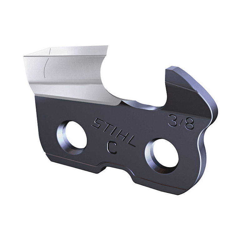 STIHL RAPID™ Super 3 is a reduced-vibration and low kickback version of STIHL RAPID™ Super. RS3 is an aggressive, fast cutting, full-chisel chain but has a single-humped drive link to reduce kickback and the cutter and tie strap design reduces vibration levels when cutting. The Razor®-edged, square-cornered cutter shape ensures minimum chain friction for an exceptionally smooth and clean cut in hard or frozen wood. It offers excellent cutting and plunge-cutting efficiency. RS3 chain typically cuts faster than RM chain, but requires careful sharpening and maintenance to continue to perform well.