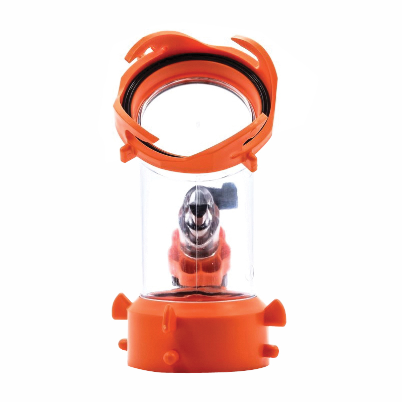 The Rhino Blaster tank rinser latches securely onto your RVs sewer outlet. The 45 deg angle allows water to blast directly into the outlet, rinsing out residue. Rhino Blaster tank rinser features a clear elbow to see when the water runs clear. A vacuum breaker prevents backflow into the water hose. Additional features include a four-prong bayonet swivel fitting that easily and securely attaches to the RV's sewer outlet and a swivel lug fitting to connect to your sewer hose.