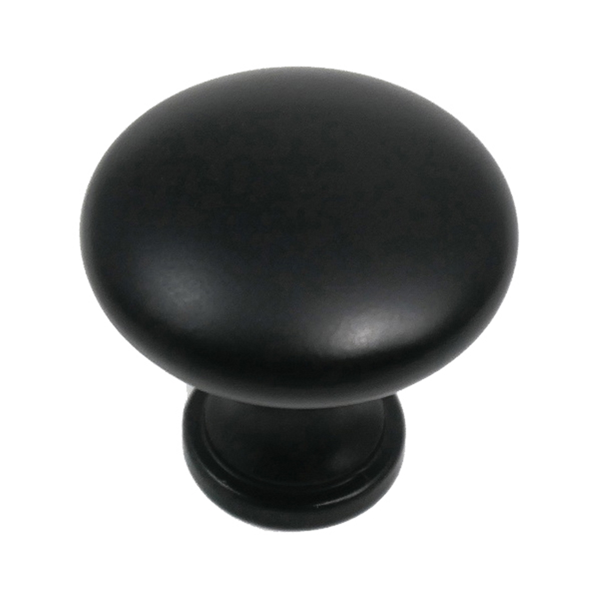 Laurey Nantucket Hollow Cabinet Knob, Style: Traditional, Design/Pattern: Round, Steel, Matte, Black, 1-3/8 in, Projection Size: 1.2 in, Base Dimensions: 17 mm, Includes: Mounting Hardware