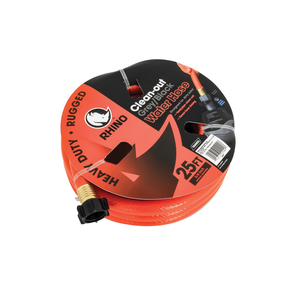 If you are flushing your RV black and gray water tanks or cleaning out a tote tank, then you have to use a separate hose so that you don't risk cross contamination with a drinking water hose. The Camco RhinoFLEX 25 ft gray water hose has a 5/8 in internal diameter, is made of durable PVC and is bright orange so that you don't mix it up with your drinking water hoses by accident. The ends are compatible with standard garden hose threads.