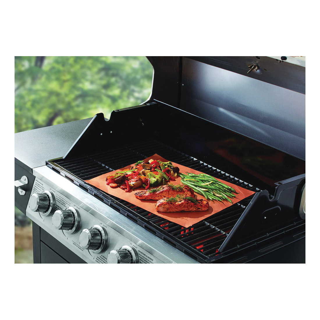 Mr. BAR-B-Q Reusable Grill Mat, Copper, 15-3/4 in L, 13 in W, 500 deg F, Includes: (1) Reusable Mat