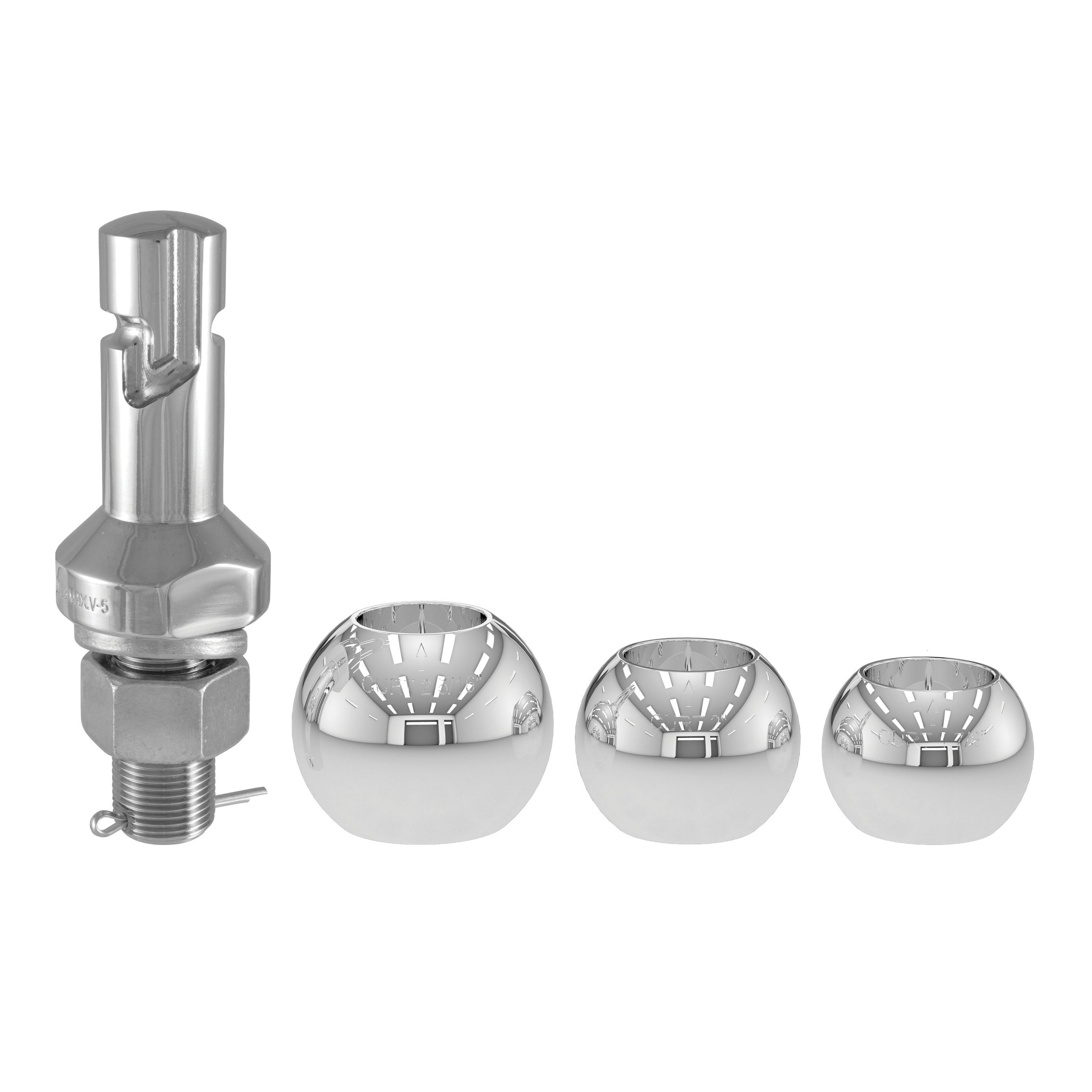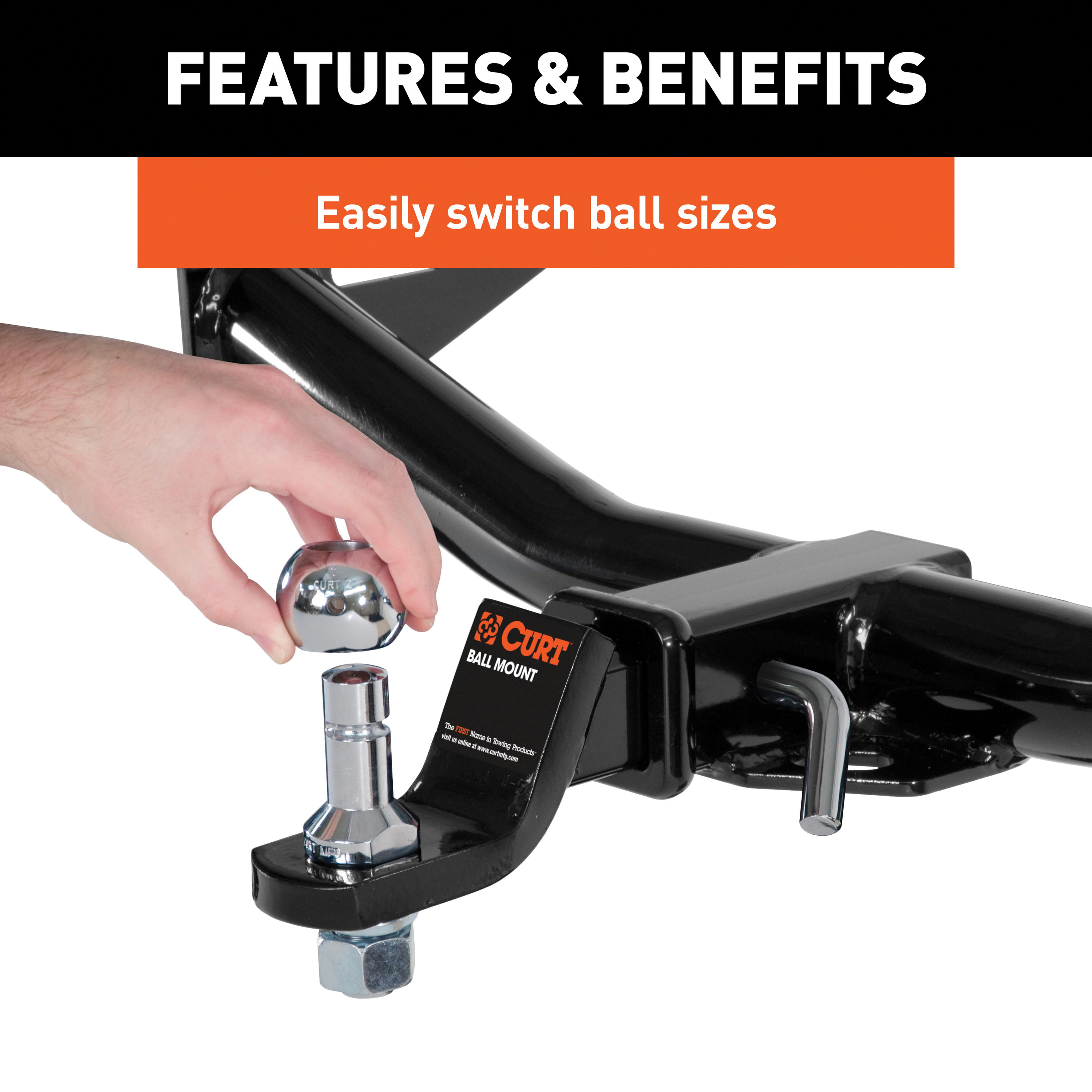 Curt switch ball trailer balls are a breakthrough in trailer ball technology. As a result of Curt innovation and engineering genius, switch balls offer the ultimate in convenience and reliability for a variety of light duty and medium duty towing applications. Essentially, a Curt switch ball is a trailer ball shank with a removable head. With its exclusive J-groove design, the switch ball trailer ball allows different heads or ball sizes to be places on the shank for accommodating different coupler sizes. This means there is no need to switch between ball mounts or even to own a second ball-mount to fit an additional trailer. When you need to make the switch, simply twist the switch ball head, lift it off and twist on another. The J-groove ensures a solid hold on your trailer, while still allowing for easy removal of the trailer ball without tools or pins. This Curt switch ball trailer ball set comes with two ball attachments. Ball one features a ball diameter of 1-7/8 in and ball capacity of 3500 lb. Ball two has a 2 in ball diameter and a ball capacity of 6000 lb. Ball three has a 2-5/16 in dia and a ball capacity of 8000 lb. The shank measures 2-1/4 in L and 1 in Dia. We construct these interchangeable hitch balls from premium-grade steel for strength and give them a bright nickel chrome finish for a long life. To ensure your safety and provide you with a tow ball you can depend on, Curt switch balls are independently tested in accordance with SAE J684.
