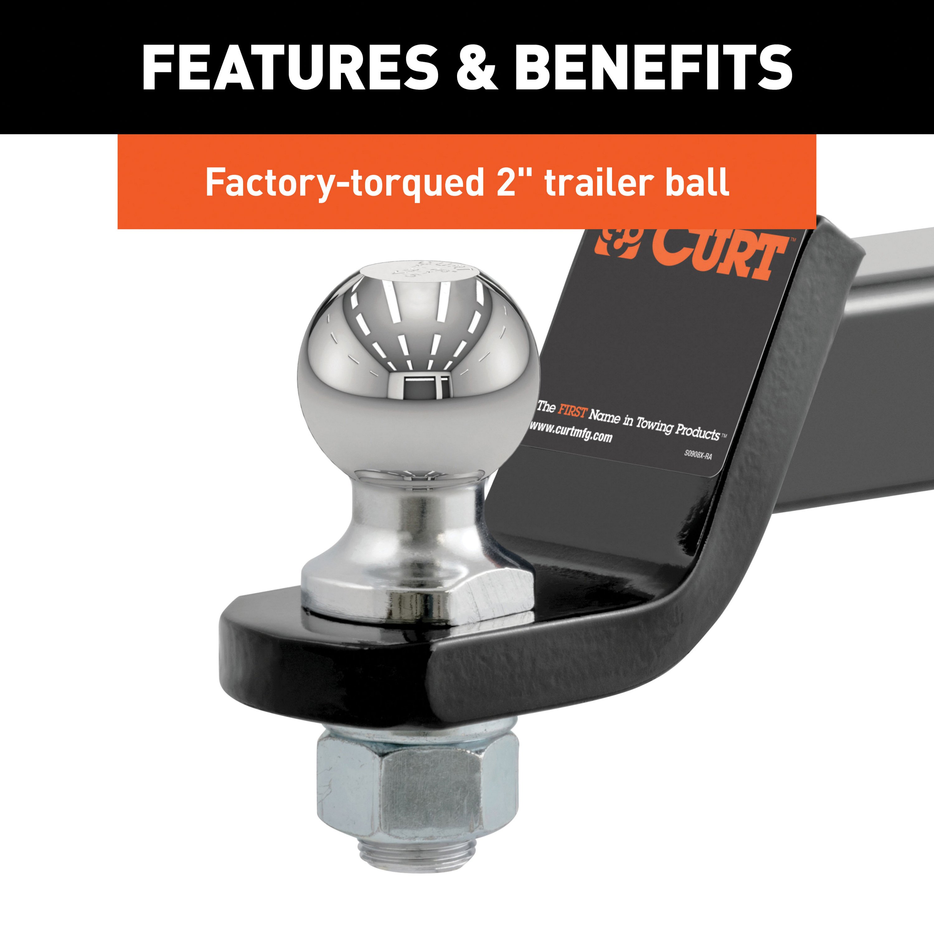 Curt Ball Mount, 7500 lb Weight, 2 in Dia Hitch Ball, 2 in Maximum Drop, Powder-Coated, Black, 8-1/4 in Length