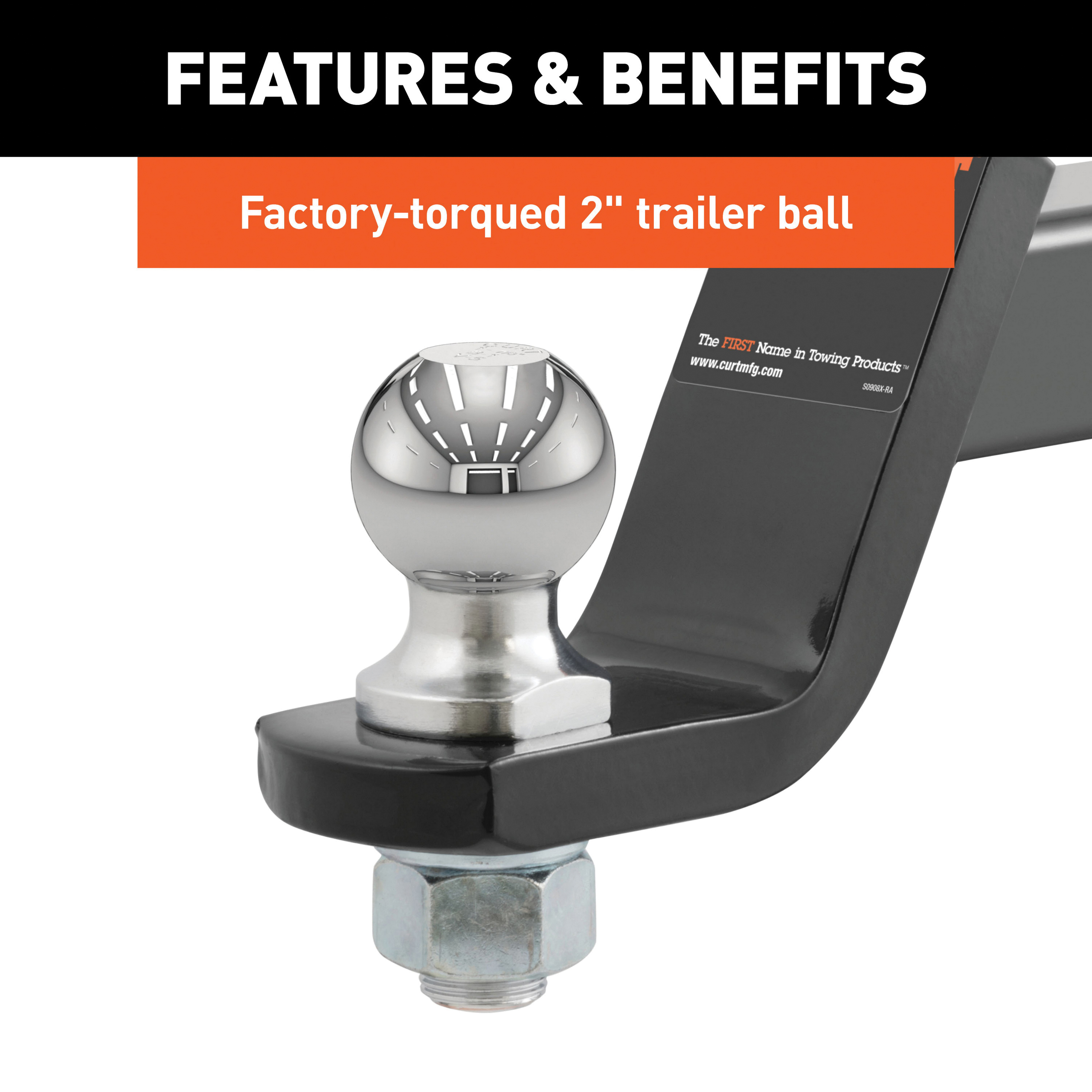 Curt Ball Mount, 7500 lb Weight, 2 in Dia Hitch Ball, 4 in Maximum Drop, Powder-Coated, Black, 8-1/4 in Length