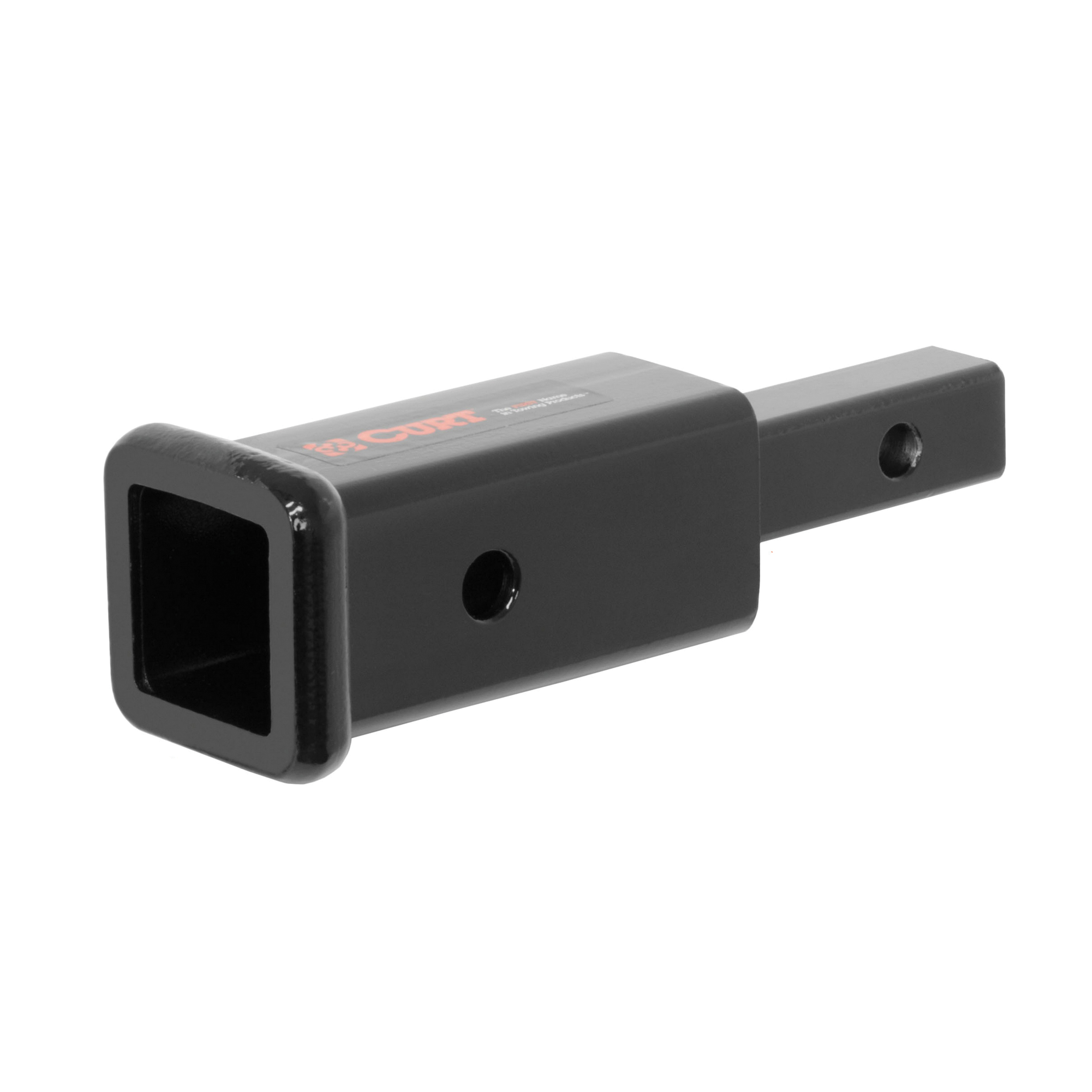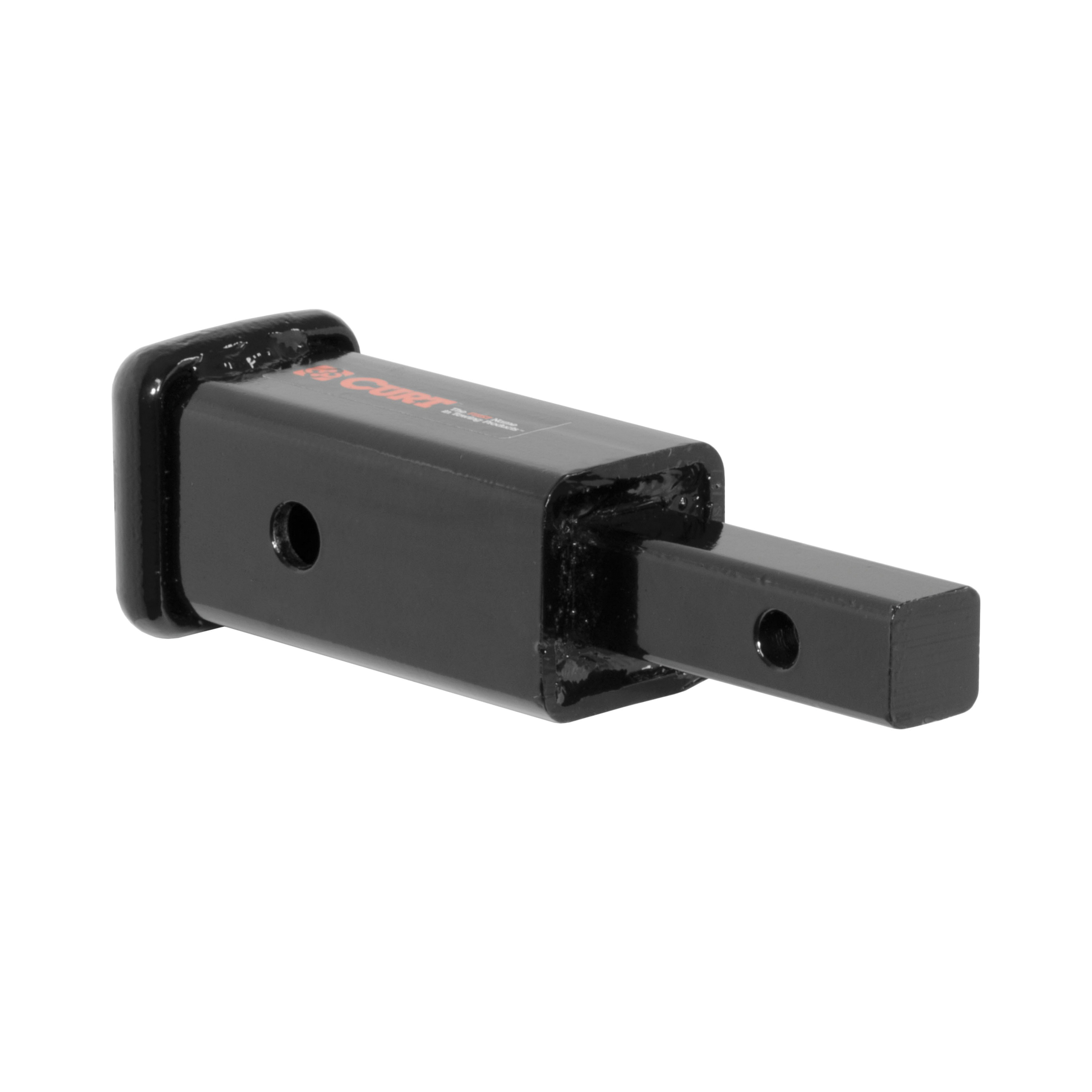 Curt hitch adapters can be used for many different purposes when hitching up a trailer. Whether a ball mount shank is too small or too large to fit into a receiver tube, a Curt adapter can make up the difference. Our adapters are built with exceptional strength and designed to be precisely fitted for their application. We carry trailer hitch adapters to accommodate both receiver tube openings and shanks of 1-1/4, 2 and 2-1/2 in dimensions. Curt adapters also come in various lengths to allow more clearance for a cargo carrier, bike rake or spare tire. This Curt receiver adapter/extender converts a 1-1/4 x 1-1/4 in receiver tube opening to a 2 x 2 in opening. It installs easily and provides 6-1/4 in of extra clearance for a bumper or spare tire. It has a tongue weight capacity of 350 lb but is not intended for towing use to pull any amount of gross trailer weight. All Curt adapters are constructed using our quality manufacturing processes. We CNC-form each unit, weld it together using advanced robotic systems and then mechanically descale every surface to make each adapter smooth to accept a finishing coat. To finish off this adapter, we give it a durable black powder coat finish to ensure it has excellent rust, chip and UV resistance.