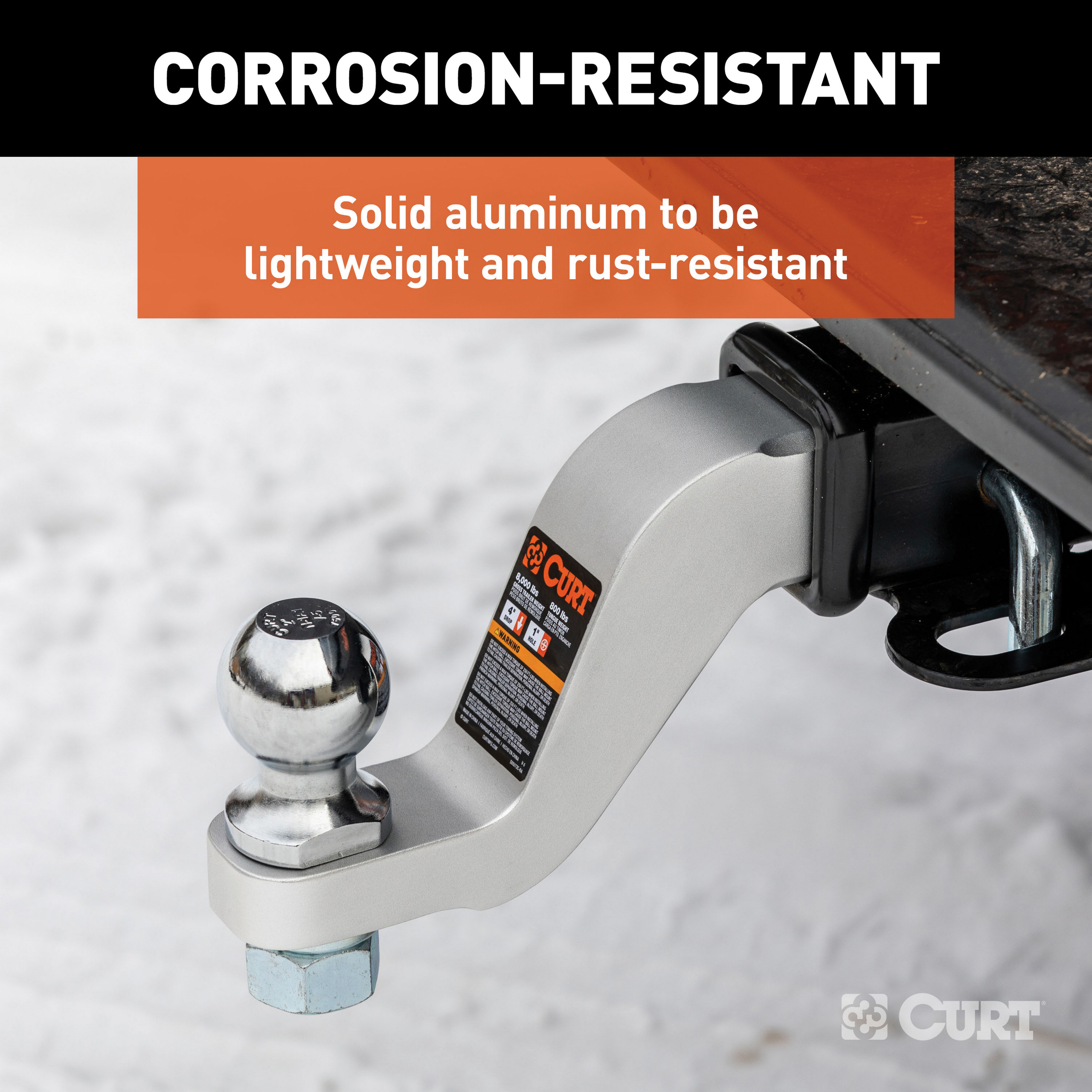 This aluminum trailer hitch ball-mount is the perfect complement to your class 3 receiver, offering a solid towing connection without the cumbersome weight of steel. Being constructed from solid, forged aluminum, this ball-mount is not only lighter weight, with an 8K rating but it is also naturally-resistant to the elements. Aluminum easily withstands exposure to dirt, rain, UV rays and more, making this aluminum ball hitch a hardworking asset in your towing system. It is great for tough jobs and towing a variety of trailers anything your class 3 hitch can handle. This hitch ball-mount features a 2 x 2 in shank to fit any industry standard 2 in receiver. It is tested and-rated to 8000 lb gross trailer weight and 800 lb tongue weight. It also features a 1 in hole to accept a trailer ball. It has a built-in 4 in drop or can be flipped for a 3 in rise to promote level towing between your vehicle and trailer.