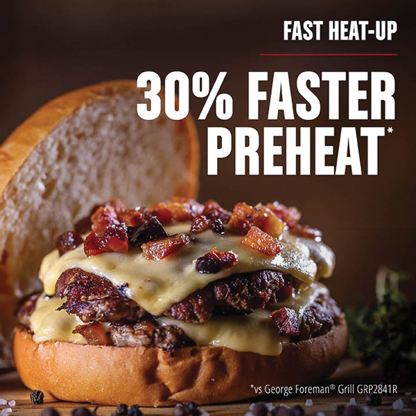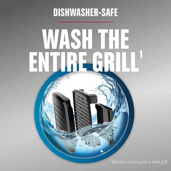 Say goodbye to greasy grills. The George Foreman® Submersible™ grill series eliminates the hassle of complicated clean-up. Remove the control panel and place all remaining components in the dishwasher or sink for a complete clean. With a 30% faster preheat, mouth-watering meals are made fast, while the 3/4 in hinge makes it easy to prepare thick burgers and sandwiches. With the adjustable temperature dial, you can cook with precise control for ideally cooked meals. Allows up to 5 servings, so you can conveniently cook for the whole family.